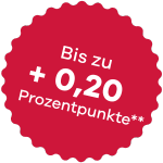 - Attraktiven Sonderzinssatz von + 0,20 Prozentpunkte** auf Sparprodukte (Festgeld und Sparbücher) aller Laufzeiten sichern